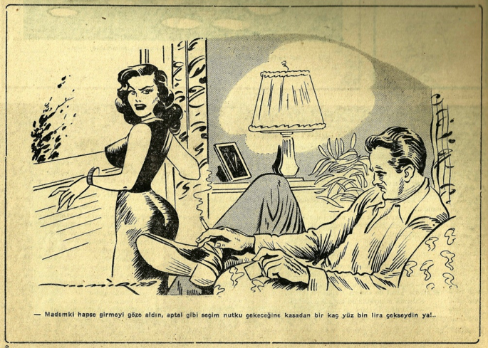 Bundan sonraki çizimler Necmi Rıza Ayça’nındır, Şaka 1947 ve Akbaba dergilerinde 1953-1954 yıllarında yayınlanmıştır.