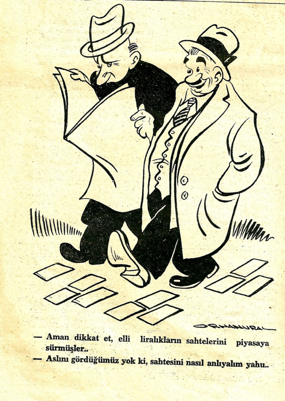 ( Önce Orhan Ural’ın 1947 yılında Şaka dergisinde yayınlanan çizimleri ile başlayalım. Orhan Ural ve Necmi Rıza, imzalarını hemen hemen aynı biçimde atmışlardır. )