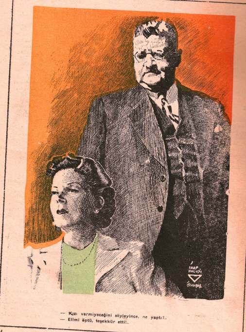 Türkiye’de Grafik Sanatlar eğitimi önce Güzel Sanatlar Akademisinde bir bölüm olarak başlamış, daha sonra 1955 yılında Tatbiki Güzel Sanatlar Okulunun açılmasıyla devam etmiştir. Tatbiki Güzel Sanatlar, Beşiktaş’da Akaretler Yokuşunun bitiminde, tam karşıdaydı (Şimdi Mimar Sinan Üniversitesi). Osman Hamdi Bey’in başına getirildiği Sanayi-i Nefise-i Hümayun Mektebinin 1882’de açıldığını hatırlarsak daha ancak 137 yılımızı doldurmuşuz. Ama unutmayalım, bu tarih bizi yanıltmasın, okullu olarak bu kadar sene, oysa resim ve duvar resimleri, boyama ve seramik süsleme, minyatür bizi neredeyse bin sene öncesine götürür. Bunu ayrı olarak yazacağım için geçiyorum. Güzel Sanatlar Okulunun açılmasından onaltı sene sonra Türkiye’nin en meşhur Grafik sanatçısı İhap Hulusi Kahire’de doğdu. Ailesi esas Kemah’lıydı.( Şimdi Erzincan’ın kazası o zaman Harput eyaletinin ) Resme ve çizime meraklıydı. Onun mektupla Alman resim hocasından ilk derslerini aldığı söylenir ama esas yeteneğini, Birinci Cihan savaşında döndükleri İstanbul’dan 1920 yılında Almanya’ya giderek Münih’te Heimann Schule atölyesinde geliştirdi. Uzatmayalım, Türkiye’ye döndükten sonra genç Türkiye’nin bütün tasarım ve afişlerinde onun imzası vardır. Ben ilkokula gittiğimde ilk elime aldığım ders kitabının kapağında onun çizimi vardı. O zamanlar biz öğrencilerin ve çoğunlukla anne veya babalarımızın ilk işi ders kitaplarımızı kaplamak olurdu. Özenle ders kitaplarımızı korurduk. Alfabem şeffaf kırmızı kaplıydı. Aynı renkte üste doğru yapıştırılmış, ortası boş beyaz etiketimin altında aşağıdaki resmi hep görürdüm.