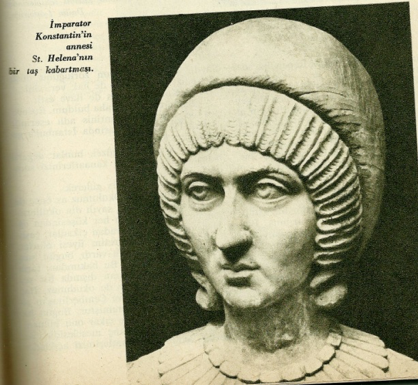 Bütün bunları tekrar yazmamın sebebi kaynağın iyi açıklanması ve doğru bilinmesi içindi, devam edelim. Sayın Rado, ‘Tarih-i Devlet-i Rûmiye’de kutsal haçın İstanbul’a getirilişini açık olarak yazar. Özetlersek, Roma imparatoru Konstantin sağlık nedenleriyle Roma’yı terk ederek sonunda İstanbul’a gelir, başkent yapar. Aşağıda resmini gördüğünüz annesi Helena yaşı ilerleyince kutsal Kudüs’ü ziyarete gider, orada kaldığı yıllarda kiliseleri onartır, yaşlı bir yahudinin yol göstermesiyle kazılan yerden İsa’nın gerildiği haç çıkarılır, İstanbul’a getirilir.