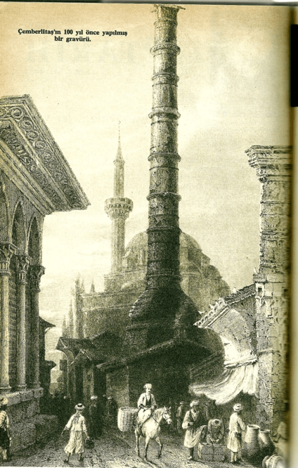 Yukarıya aldığım fotoğraf aynı dergiden, 1968 senesinde çekilmiştir, arkasında gördüğünüz kubbeli binalar Çemberlitaş hamamıdır. Yanında Vezirhan vardır. Sonuçta İstanbul polisi Vezirhanda kalan üç turisti tutukladı, sınırdışı ettiler. Üç İtalyan papazı Vezirhanda zemin katta kaldıkları odadan Çemberlitaşın altına doğru tünel kazarken yakalanmışlardı. İleriki yıllarda Fikri Sağlar’ın kültür bakanı olduğu dönemde bu konunun yeniden gündeme geldiğini duymuştum, kapandı.