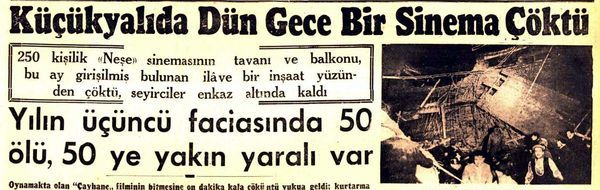 1957 Senesinde semt , Ankara’nın Büyük Sinemadan sonra en modern şık sineması olan “Renkli Sinema”ya kavuştu. Bu dört sinemadan ikisinin kaderini İstanbul’da olan bir kaza belirledi 24 ocak 1959 gecesi Küçükyalı’da Neşe sineması çöktü. Olay tam bir facia idi.