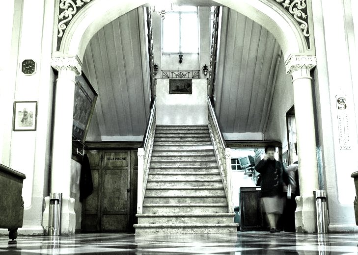 Gördüğünüz resimdeki bayanın durduğu yerde “Resepsiyon” var, fotoğrafta görülmüyor. Doğruca onun yanına gittim. Gözlüklü , yaşlıca bir beydi, çok çabuk arkadaş olduk. Türk olduğumu söyledim, hiç üşenmedi, yerinden kalktı ve gördüğünüz merdivenlerden yukarı çıkardı ve bir odanın kapısına geldi, anahtarla açtı. “İşte Atatürk burada kaldı” dedi. Oda numarası 201 idi ve aralıklı zamanlarda da olsa beş sene boyunca otele her gelişimde bu odayı istedim.