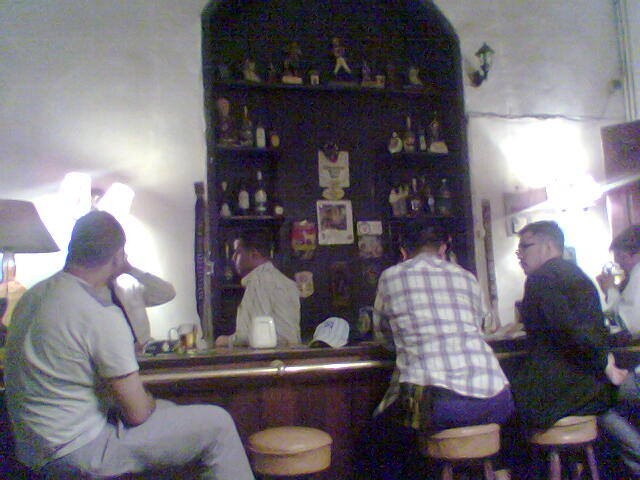 Odaların içi olduğu gibi korunmuştu, gardıropların kapakları gıcırtıyla açılıyor, çekmeceler zor çekiliyordu, yerdeki kırmızı desenli el halısı oldukça eskiydi. Benim kalmaya başladığımdan iki veya üç sene sonra odaları tek tek elden geçirdiler, mobilyalar ve duvarlar boyandı. Yukarıdaki resim boyadan sonra çekildi. Şanslıydım, o eski haliyle doya doya yaşadım. Tekrar ana girişe dönersek, sağ tarafta oturma salonu var, bu salonda eski yıllarda otelde konaklayan, çoğu ünlü müzisyenlerin gece konserler verdiği bir piyano var, öylece duruyor bir kenarda, camlı vitrinde ise Lawrence’nin imzaladığı bar fişi. Ana kapıdan girişte, benim en sevdiğim yere, soldaki yüksek kapıdan giriyorsunuz.