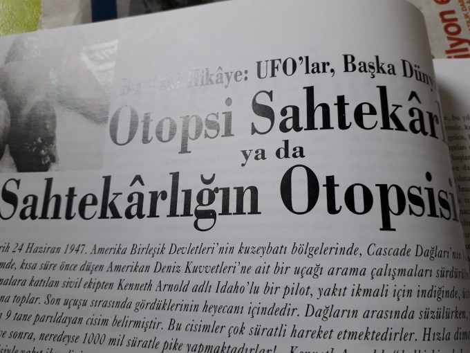“Artık hayata atılacaksınız, arazi disiplin ister, çalışma ister, yorulacaksınız ve en önemlisi burada ne bulursanız onu yiyeceksiniz, ben yemeğin yanında şunu isterim, bunu isterim yok, burası artık ne annenizin ne babanızın evi.. Yemek yarım saatte yenecek ve bu masalarda her ekip haritasını açıp bana nereleri gezdiğini, neler yaptığını tek tek anlatacak. Anlaşıldı mı ?” Karşımızdaki insan Türkiye’yi neredeyse yürüyerek gezmiş birisi, biz işi ciddi tutmazsak işimiz zor. Neyse, uzatmayayım sabah erkenden jeep bizi çalışma yerimizin yakınına bırakıyor ve akşam belli saatte alıyor. Bizim çalıştığımız yer, bügün düşünüyorum da gerçekten zor bir yere düşmüşüz, içinde çalılarla kaplı gölet, kayalıklar, dikenler, kırıklı bir zeminin ortasında çabalıyoruz. Bu çalışma içinde ikinci veya üçüncü gün öğleden sonra geldiğimiz yamaçta uzakta parlayan beyaz boyalı bir cisim gördük.. Daha önce bizi uyarmışlardı “sizin bölge Gebze Topçu Tugayına yakın ve eskiden orası onların atış alanı, bu nedenle dikkatli olun patlamamış mermi olabilir” diye. İkimizde bir merak, o bana baktı ben ona ve yavaş yavaş yaklaştık. Arkasında incecik ipleri olan beyaz irice bir kutuya benzer bir cisim, bir tarafında kapalı bir boru gibi bir şey var. Üç dört metre kadar yakınına yanaştık, ama elimizi sürmedik. Akşam kampa döndüğümüzde artık kafamızda tek bir şey vardı onun ne olduğunu anlamak. Sabah doğruca aynı yere gittik. Orada sessiz bizi bekliyordu. Oğuz pratik zekasıyla yanında getirdiği uzun ipi, cismin ince iplerine bağladı, kendimizi güvene alacak bir mesafeye gittik, yavaş yavaş çekmeye başladık. Ne bir patlama oldu, ne dağılma, süzülerek yanımıza yanaştırdık. Kutu yan dönmüştü ve üzerindeki yazılar şimdi rahatça okunabiliyordu. Yazılar İngilizce idi. Tehlikeli olmadığını ve sadece bir meteoroloji balonuna ait ölçüm cihazları olduğunu söylüyordu. Oğuz kutuyu iki eliyle tuttu. Gerçekten ağırdı, iplerden ayırdık, yanımıza aldık. Şimdi bütün bunları neden anlatıyorsun diyeceksiniz, onun için konuya döneyim. Bizim bu yaşadığımız olaydan tam 23 sene önce, sivil pilot Kenneth Arnold 24 Haziran 1947 tarihinde Amerika Birleşik Devletlerinin kuzeybatısında Cascade Dağlarının bulunduğu kesimde “uçan gök cismi” gördüğünü basına açıklaması ile birlikte dünya ilk defa “UFO”larla tanışır. Bu olaydan tam iki hafta sonra 8 Temmuz 1947 de New Mexico’daki Roswell Askeri üs komutanlığından gelen resmi açıklama ile Amerikan ordusunun bir uçan daireyi ele geçirdiği öne sürüldü. “Uzay aracı William Mac Brazel adlı çiftçinin arazisine düşmüş ve parçalanmıştır.” Olay yerine ilk giden üssün istihbarat sorumlusu Binbaşı Jesse Marcel’dir. Parçalar toplanır ve süratle Texas’daki Fort Worth üssüne götürülür.