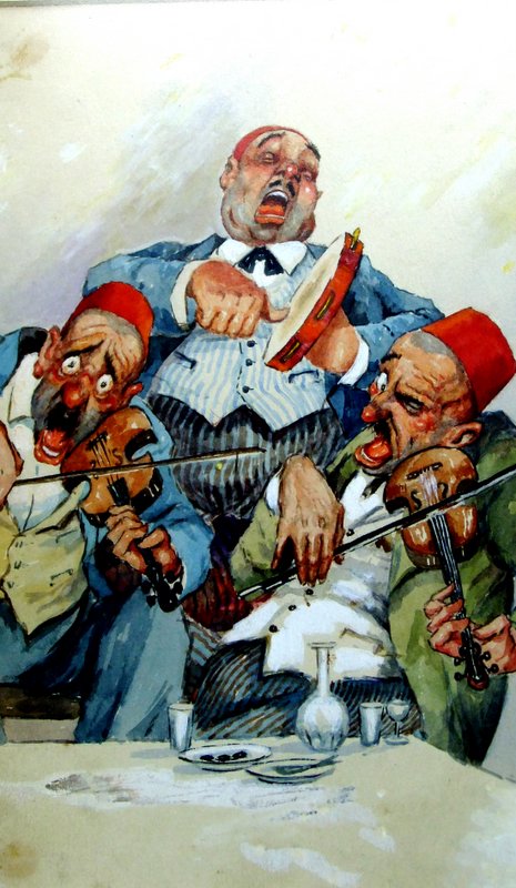 ” Aslen İtalyan, ön adı Alfonsi. suluboya ve yağlıboya olarak çalışmış. İstanbul karikatürlarinden şu anda mevcut sadece on dokuz adet var ve hepsi bende. Yağlıboya yaptığı kendi portresini gördüm, muhteşem bir eser İzmir’de bir Hanımefendide, ama satmıyor.”