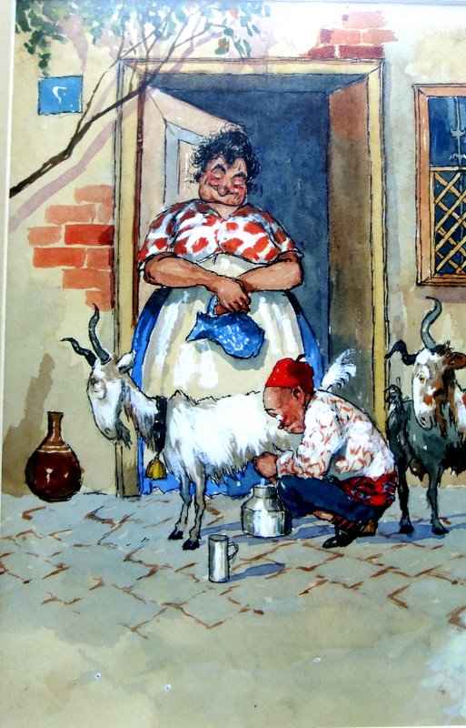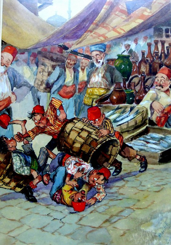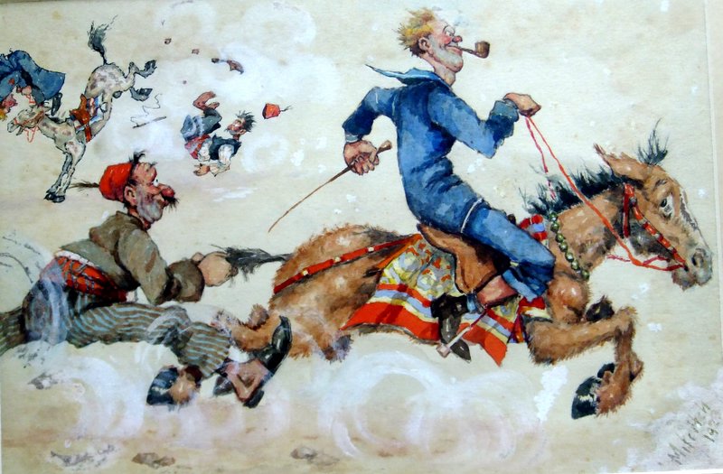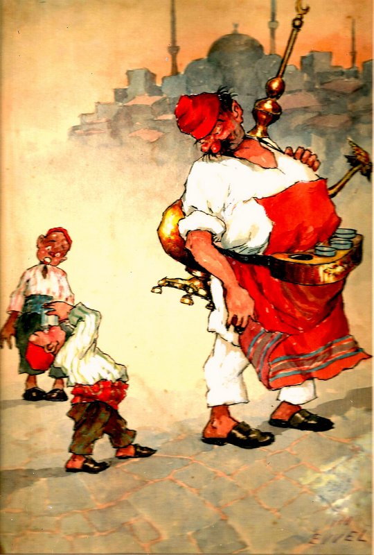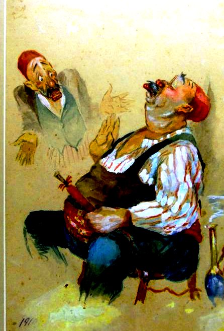 Yukarıda gördüğünüz resimle 1950’li yıllarda tanıştım. Babam, her türlü resim ve kartpostalı bir kutuda biriktirir, bazı günler açıp masada yeniden düzenlerdi. İşte o günlerden birinde masanın üzerinde, yorgun bana bakan sakallı adamı gördüm. Bana yazları gittiğimiz İstanbul Erenköy’deki küfesi sırtında, kızgın güneşte köşklerin ara sokaklarında sebze satan terli adamı hatırlattı. Çocuk olarak başına üşüşür, sihirbaz gibi küfesinden çıkanlara bakardık. O zamanlar bu adamlara “Zerzevatçı” denirdi. Bu resim benim favorim olmuştu. Babamda ayrıca buna benzer aynı çizgilerde bir başka resim daha vardı, yani topu topu iki tanecik kartpostal. Altında “1910 EVVEL” yazılıydı, siyah harflerle yani 1910 yıllarından önce, oysa ellili yıllarda bile vardı bu sokak sebzecileri. Hayatın, bu resmi benim karşıma çıkaracağından habersiz yıllar geçti. Seksenli yıllarda Bodrum’da tanıştığım ve sonradan arkadaşım olan Metin Acar’ın evinde havadan sudan konuşurken “En güzel İstanbul karikatürlerini Mitrich çizmiştir” dedi. “Tanımıyorum” dediğimde yerinden kalktı, içerideki odadan kucağında bir yığın resim çerçevesi ile geldi, ahşap masanın üzerine koydu. Meraklı kedileriyle birlikte, resimlere baka kaldım. İşte, çocukluğumda gördüğüm o kartpostal önümdeydi, hem de orijinal olarak. Peki, kimdi bu Mitrich ? Metin Acar anlatıyor: