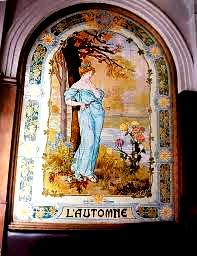1950 li yıllar, arkada dört mevsim seramik duvar panolarından biri