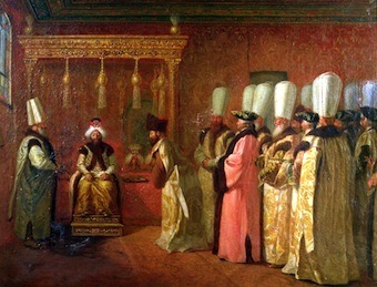 Aşağıya, yabancı elçilerin kabulünü gösteren iki resim alıyorum.