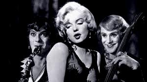 Yukarıya aldığım resim 1960’ların unutulmaz filmlerinden ‘Bazıları sıcak sever’ önde Marilyn Monroe, arkasındaki iki bayandan soldaki Tony Curtis diğeri ise Jack Lemmon. Gangsterlerden gizlenmek için kadın kılığına giren iki müzisyenin, şarkıcı Marilyn’in grubuna girmeleri ile yaşanan olayları konu alıyordu. Filmden bir resim daha alıyorum aşağıya.