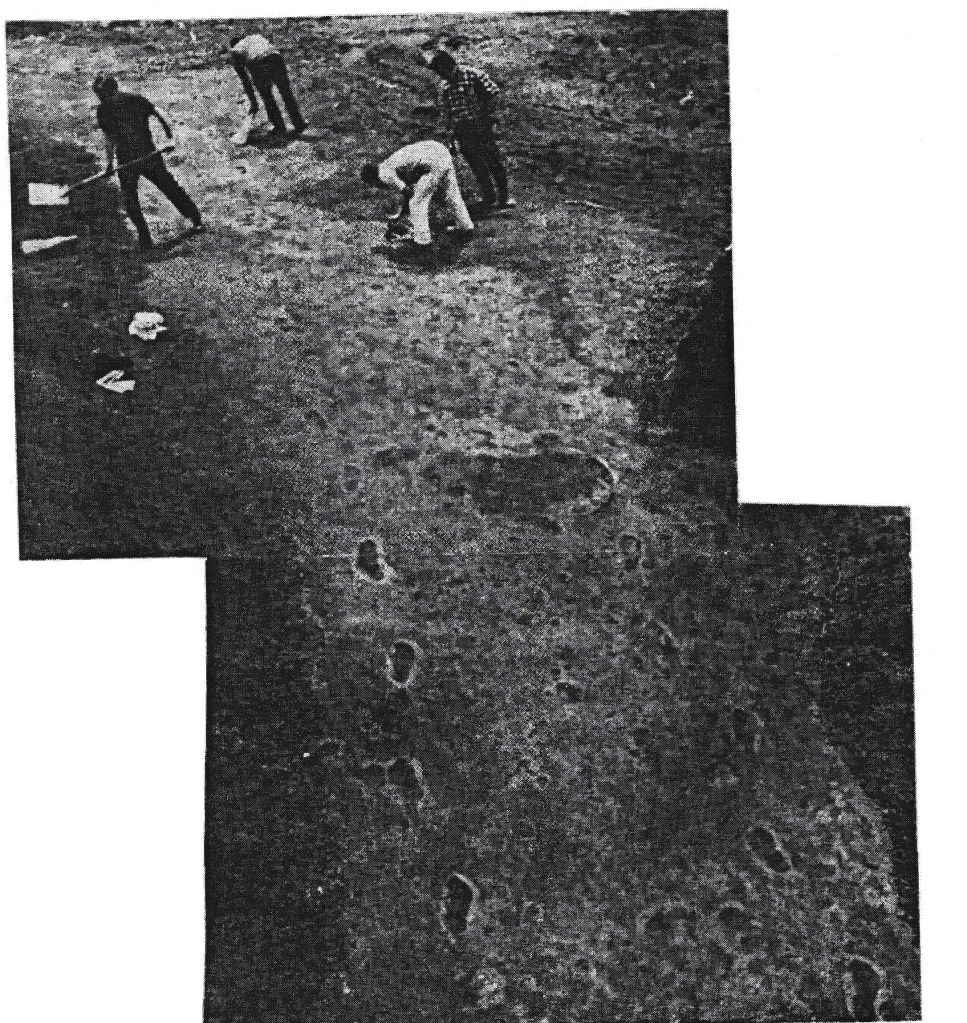 Çakallar adı verilen volkan konisinin beş buçuk metre kalınlığındaki tüflerin altında ayak izleri bulundu. İzler yürüyen ilkel iki insana ve bir hayvana aitti. Bölgede inceleme yapan paleantolog Fikret Ozansoy izlerin 250 000 senelik olduğunu söyleyince kıyamet koptu. Jeolojik yaş hesaplaması ile belirlediği bu izler Anadolu’da ilkel insanların yaşadığının önünü açacak önemli bir gelişmeydi. Aşağıya normal bir insanın ayak izi ile bulunan primatın ayak izini alıyorum.