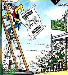 Her üçünün ortak yanı, zevkle okuduğumuz, daha doğru bir deyişle bıkmadan okuduğumuz çizgi romanların yaratıcıları. Önce Maurice’den başlayalım. Belçıka’da doğdu, saygın bir okulda okuyordu. Matematik eğitmeni, ailesini okula çağırdı ve doğrudan ‘Üzgünüm ama çocuğunuzun hayatta başarılı olma şansı hiç yok’ dedi oysa küçük Maurice öyle veya böyle bu dersten geçebiliyordu. Sonunda okulu bitirdi. Çizim ve karikatüre meraklıydı, ilk çizgi romanını Fransa’da yayınlanan ve halen yayın hayatını sürdüren ‘Spirou’ ( Ülkemizde de bir ara yayınlanan Sipru ) çizgi roman dergisine gönderdi. Arizona 1880 adıyla yayınlandı. Derginin kadrosuna çizer olarak girdiğinde yirmi üç yaşındaydı. İlk kazandığı parayla Amerika’ya doğru yola koyuldu. Altı sene Amerika’da kaldı. İşte bu gezi sırasında ikinci fotoğrafta gördüğünüz Rene ile tanıştı ve çabucak kaynaştılar. Rene muzip esprili ve komik bir adamdı. Çizerliğinden daha çok hikâye anlatmayı seviyordu. Rene’nin vefatına kadar tam yirmi iki sene birlikte çalıştılar. Evet, hepimizin bildiği Lucky Luke onların eseri. Marice isminin İngilizce karşılığı olan Morris’i kullanmaya başladı, Rene Gosciny ise tüm maceraları yazdı.