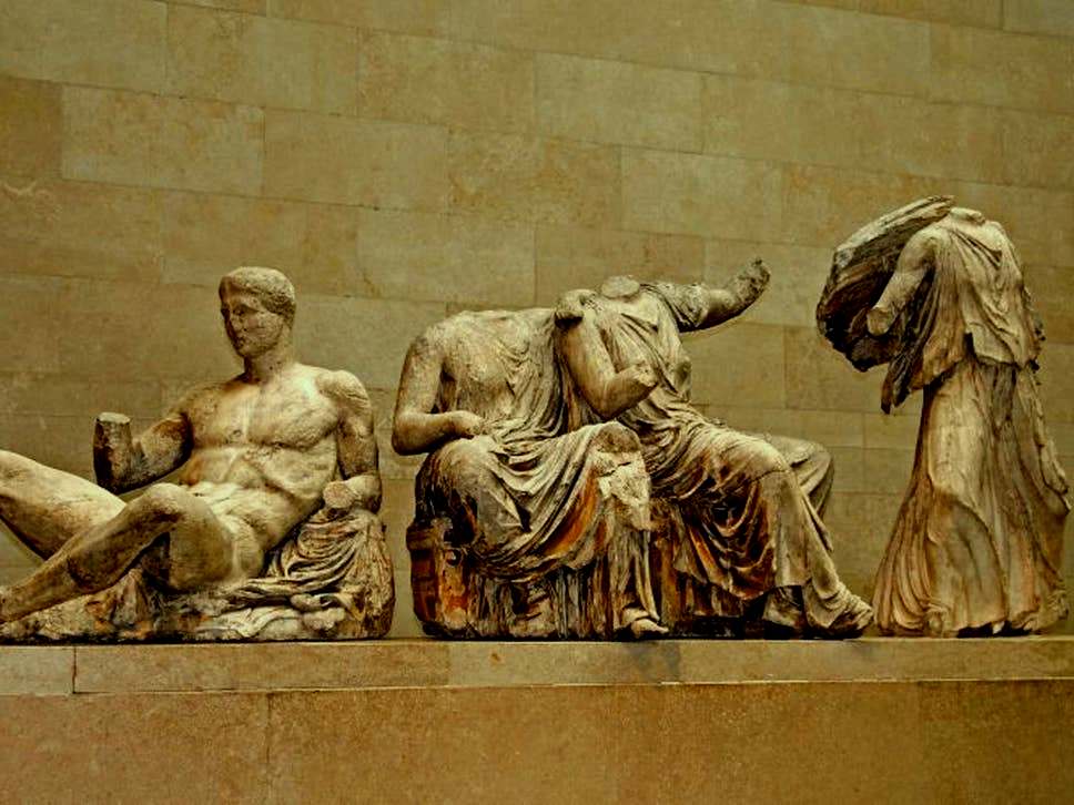 Parthenonun 200 metreyi aşan çevresini süsleyen frizlerden,, ön ve arka yüzünde bulunan heykellerinden ne yazık ki 75 metresi günümüze ulaştı, söküm ve taşıma sonunda kalanlar.