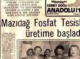 Ne yazık ki sevinç uzun sürmedi. Doksanlı yılların ortalarında Özal ‘Zarar ediyor’ gerekçesi ile bu büyük tesisi kapattırdı. Tekrar yurt dışından ‘Fosfat Gübresine’ muhtaç kaldık.