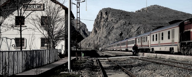 Yazımıza ‘Güneş’ istasyonunun günümüzdeki fotoğrafı ile başlamak istedim. İstasyonun arkasında, daha önce yazdığım, aştığımız dağ görülüyor. Alttaki fotoğraflar sarp dağlar arasındaki Bağıştaş istasyonunda Doğu Ekspresi beklerken.