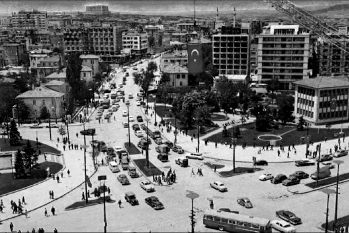 1980li yılların başında çekilmiş, yukarıya aldığım fotoğraf. Ankara Kızılay Meydanından Maltepe’ye doğru uzanan bulvarın, İzmir Caddesi köşesinde gördüğünüz yüksek bina, ‘Kızılay Dershanesi’. ‘Celep’le başlayan yazılarımız burada anlatacağım anılarla tamamlanmış olacak. Aşağıdaki fotoğraf ise ‘Antoloji Ankara’ sitesinden. Birbirinden güzel fotoğrafların arasından seçtiğim fotoğrafta, önde Nevra Serezli, tam arkasında ise, bugünkü konumuz Kızılay Dershanesi görülüyor.