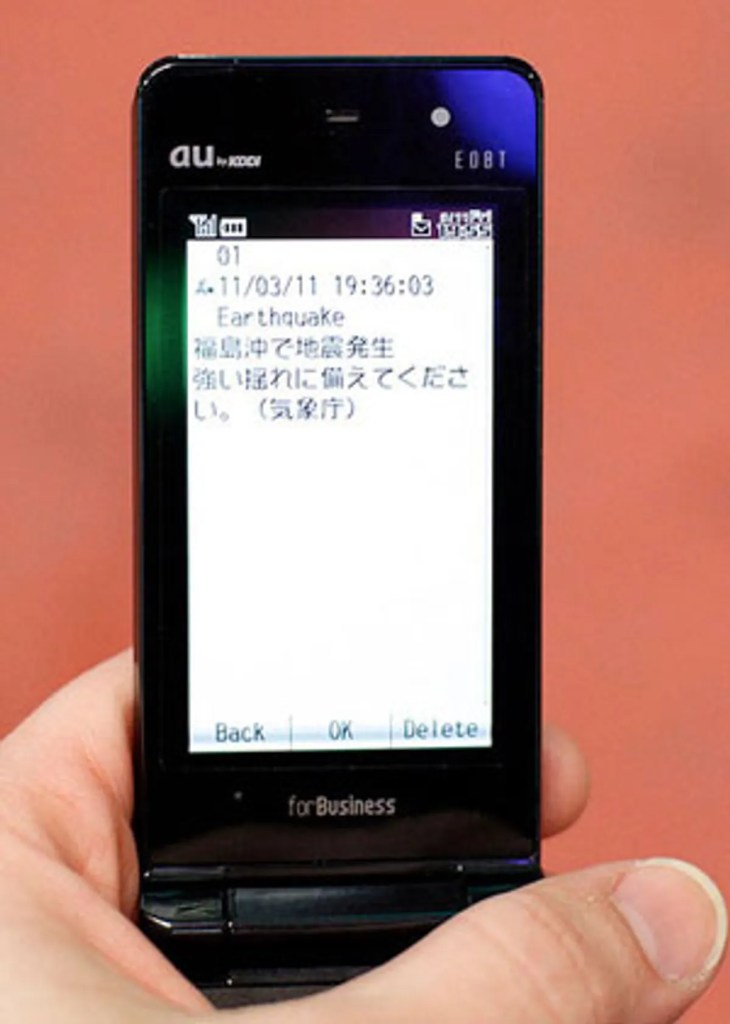 Depremin başladığını bildiren P dalgalarının sinyali ülke genelinde yaygın olarak yerleştirilmiş binin üzerindeki sismogramla bilgisayar destekli sistemde birleştirilmiş ve kurulan erken uyarı sirenleri ile halk yaklaşık bir dakika önce bilgilendirilmişti. Cep telefonları ile alarma geçirilen halk kurtulabilmişti. Unutmayalım dünyada tek su geçirmeyen cep telefonları Japonya’dadır ve onlar banyoya bile cep telefonları ile girerler, işte kurtuluşun bilgiyle birleşmesi ve bilgiye güvenin sonucu insanın değeri oluyor, kader değil, bilgi. Aşağıdaki fotoğraf o gün gelen mesajı gösteriyor.