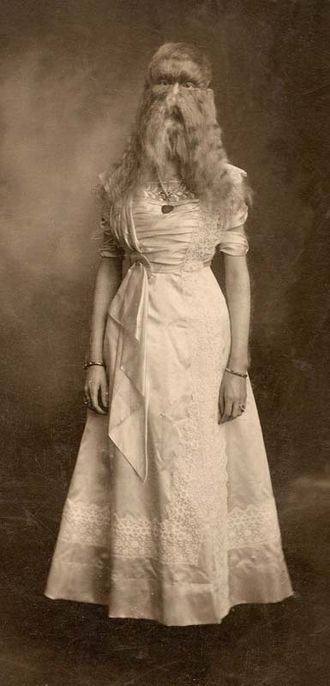 Bu yorumlarla dolu girişten sonra size iki kişiyi tanıtmak istiyorum. İlki ABD doğumlu, adı Alice Elizabeth Doherty. Alice doğduğunda ailesi şaşkındı, küçük bebeğin yüzü tüylerle kaplıydı. Ne kadar uğraştılarsa geçmedi ve hep tüylü kaldı. Alta çocukluk resmini alıyorum.