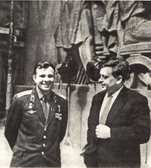 Bu muhteşem anıtı yolunuz düşerse, yapılan yeni düzenlemelerle Moskova’da görebilirsiniz. Anıt 77 derece yataydan eğimle yapılmış, yanı yirmi üç derece düşeyden sapması ile ‘Dünyanın en eğik’ insan yapısı olarak kabul ediliyor (Ünlü Piza kulesi sadece dört derece düşeyden yatıktır) Anıtın etrafında, dairesel düzende, ilk uzaya çıkan astronot, ilk kadın kozmonot ve Rus Uzay bilim adamlarının büstleri yerleştirilmiş. Alta aldığım fotoğrafta Yuri Gagarin heykeltraş Alexiev’le birlikte görülüyor.