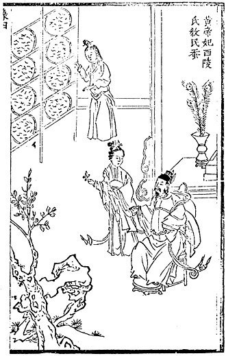 Burada bir ara verip size önce Koza’dan İpek ipliğinin nasıl bulunduğunu anlatalım. Hikâyeye göre, efsanevi (Bu terimi özellikle kullandım, bazı kaynaklar onun yaşamadığını bazıları ise MÖ 2000 ler de yaşadığını savunuyorlar) Çin İmparatoru aşağıda resimde gördüğünüz (Sarı İmparator olarak da anılan) Huangdi’nin eşi İmparatoriçe Leizu elinde çay bardağı ile saray bahçesinde dolaşırken, çiçeklerle ilgilenmek için bir köşeye bıraktığı fincanına bir koza düşer, sıcak suda ayrışan kozanın iplikleri bardağı doldurur, Prenses bardağını almak için geldiğinde gördüğü olayı şaşkınlıkla anlatır.