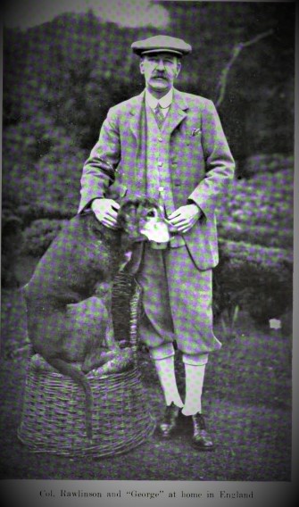 Fotoğrafta gördüğünüz Alfred Rawlinson ve köpeği George. Babası Henry Ülkemizde uzun yıllar çalışmış, Sümer tabletlerini ilk okuyan kişi olarak biliniyor. Kendi Ülkesinde ‘Baronet’ ünvanlı bir asil. (Bu unvan daha sonra ‘Sir’ olarak değişecek, önce büyük oğluna daha sonra Alfred’e geçecektir) Alfred, macera tutkunu aynı zamanda, 1900 Paris olimpiyatlarında altın madalya alan İngiliz Polo Takımında yer almış bir sporcu. İyi bir Pilot. Askerliğine gelince çoğunlukla ‘Özel’ görevlerde çalışmış, Birinci Büyük Savaşta Fransa’da Aubers’de Almanlara karşı ‘stratejik bombalama’ görevini üstlenmiş. Daha sonraları Londra’nın Almanlara karşı hava savunma gurubunun başına geçmiş. Birinci Büyük Savaşın sonlarında 1918 yılında ‘İstihbarat Subayı’ olarak Ülkemize geliyor.