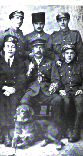 Oturanlar; Deniz asteğmeni Nafi (Rawlinson’dan sorumlu), Yarbay Rawlinson, Onbaşı Ankers ve önlerinde Ermenistan’da ekibe katılan köpekleri George.