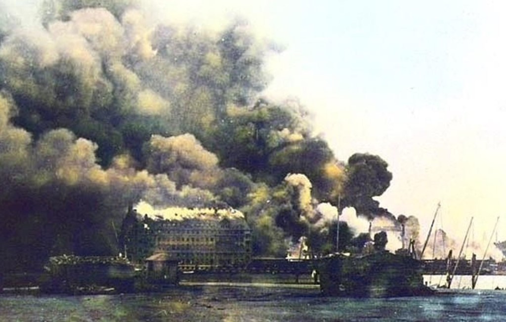 Patlama o kadar güçlüdür ki, devamında çıkan yangın Avrupa yakasından bile gözlenebilmektedir. Alttaki fotoğraf o anlarda çekilmiş.