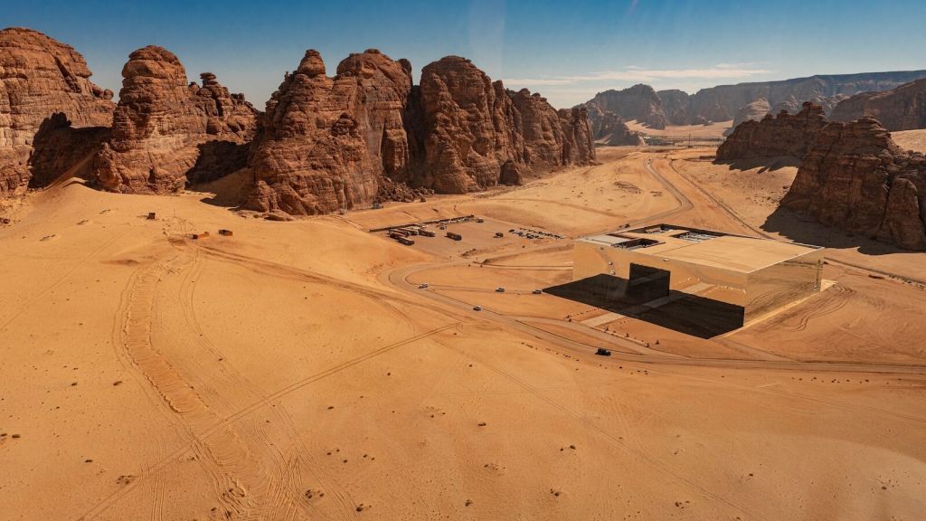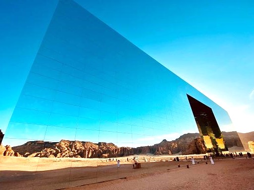 Yukarıdaki fotoğrafta gördüğünüz üç genç, Florian Boje, Cristiana Picco ve Claudio Santucci kafa kafaya verdiler, yaratacakları eser çevreyle uyumlu olmalıydı, çölün ortasında bir binanın çirkinliği firmalarının da sonu olurdu. Çözümü saatler süren tartışmalar sonunda yarattılar, bina adeta görünmez olmalıydı, çölde bir serap gibi, varlığı ile yokluğu anlaşılmamalıydı. Kısaca ‘Konser Salonu’ dış yüzeyleri ayna olmalı esas yapı görünmemeliydi. Dünyanın en büyük aynası olarak Guinness Rekorlar Kitabına geçecek olan ‘Maraya Konser Salonu’ üç gencin tasarımı. Alta aldığım fotoğrafta bir bina var ama sadece ayna olarak.