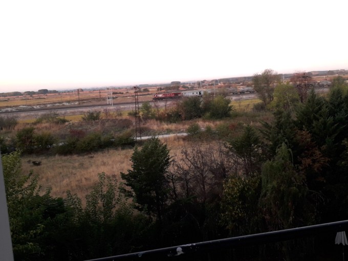 Edirne’de kaldığımız otelde ilk gecenin sabahı, gün ağarırken uyandım. Beni uyandıran, gece açık bıraktığım balkon kapısından duyduğum derinden yaklaşan makine sesi, evet, bir trenin sesiydi. (Denizden uzak, Ankara’da ben ve benim gibi arkadaşlarım için, yaz tatiline gitmek Ankara Garından Mototrene binmek, her sene gün sayarak beklediğimiz, heyecanlandığımız bir olaydı. Ne zaman tren sesi duysam bunca sene sonra yine heyecanlandırıyor.) Bir müddet bekledikten sonra tren göründü. Yukarıya aldığım fotoğraf, otelin arka bahçesine bakan odamdan, o günün alacakaranlığında çekildi. (Kendimi zorladım, ‘Daha önce tren yolu kenarında başka bir otelde kaldım mı’ diye. On beş sene önce, uzunca bir zaman Şarkışla’da kaldığım Karaoğlu Tesislerindeki odam istasyona yakındı ama ne istasyonu ne de demiryolu görünmüyor, sadece trenin sesini duyabiliyordum.)