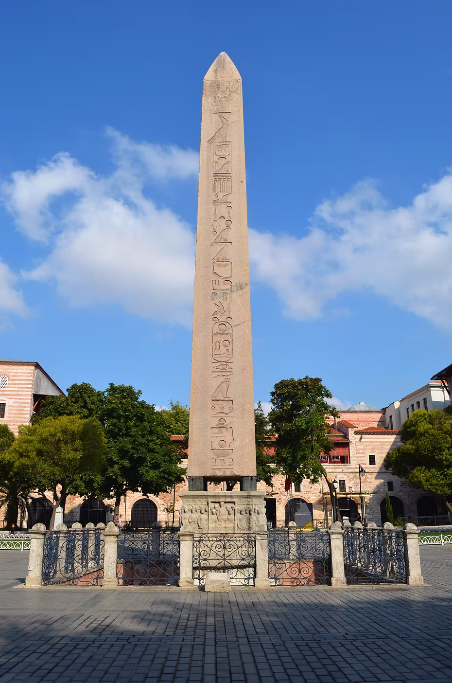 İstanbul Sultanahmet Meydanında bulunan Obelisk, Nil nehrinin güneyindeki ‘kızıl granit’ ocaklarından çıkarılıp işlendikten sonra, ikizi ile birlikte (Nil Nehrinin akıntısından yararlanarak, dört yüz tonu geçen ağırlığı, dile kolay yüzdürmüşler. Nasıl taşıdıklarını ileriki nesiller merak eder diye üstelik tekne çizimlerini de papirüslerle bize bırakmışlar.) Karnak Tapınağının Doğu girişine, Güneş Tanrısı Ra için yerleştirilen iki obeliskin kaderi Roma işgali ile değişir. Bin dört yüz yıllık anı-taşları sökülüp zorlu bir yolculuk ile İskenderiye’ye getirilir. Bundan sonra iki kardeş obelisk birbirinden ayrılır önce biri yeni başkent Kostantinople yani İstanbul’a diğeri ise başkent Roma’ya gider ve aşağıda fotoğrafını gördüğünüz Maximus Meydanına dikilir ancak ilerleyen yıllarda terk edilen bu meydanda kaderine bırakılan obelisk devrilir, çamurlara gömülür.