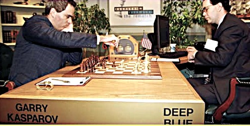 İBM in geliştirdiği ‘Deep Blue’ (Mavi Derinlik) ile Dünyanın bir numaralı Satranç Ustası Kasparov 17 Şubat 1996 günü Filadelfiya’da karşı karşıya geldiler.