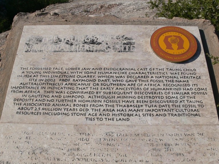 2002 Yılından bu yana UNESCO yöreyi ‘İnsanlığın Beşiği’ olarak kabul ediyor. Yolunuz düşerse, Taung Çocuğunun bulunduğu yere turlar var, orada aşağıya aldığım fotoğraftaki Plakayı yerinde görebilirsiniz.